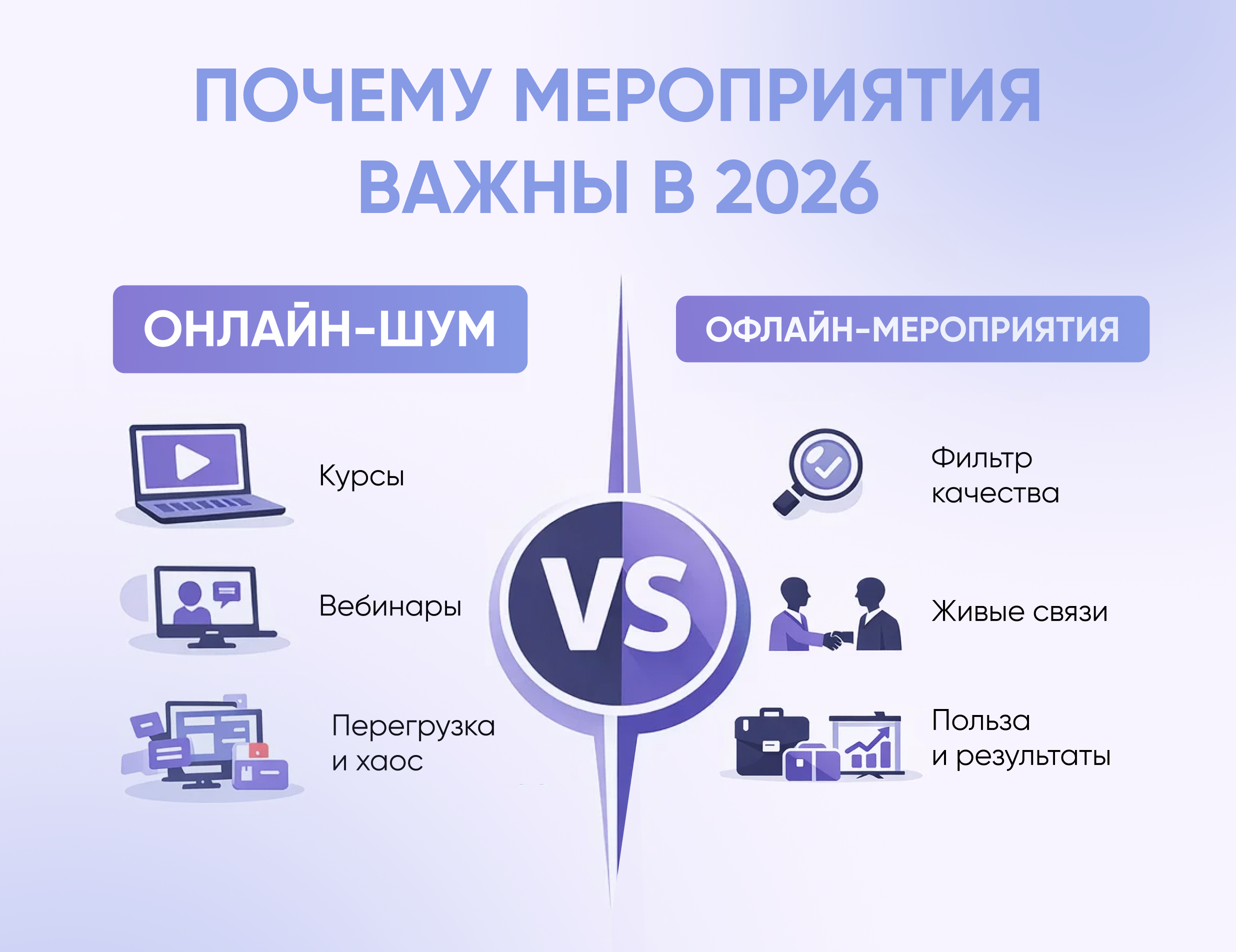 Рынок продвижения в 2026 году находится в состоянии перегруза: инструментов становится больше, каналов — десятки, а информации — в разы больше, чем бизнес физически способен обработать. Онлайн-курсы, вебинары и статьи больше не дают конкурентного преимущества — они лишь создают фоновый шум. В этой реальности ценность приобретают профильные мероприятия, которые помогают отфильтровать главное и применимое на практике.