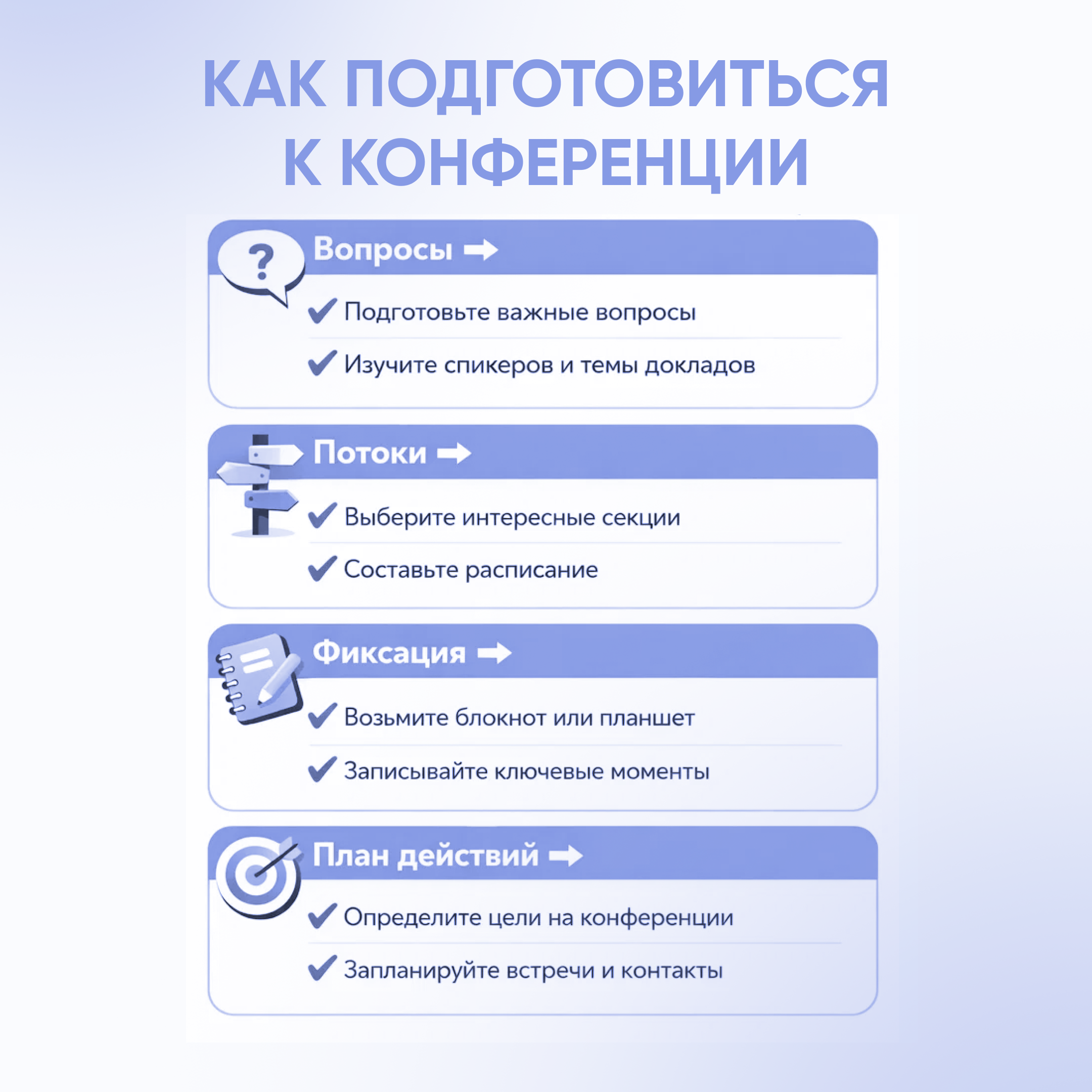 А чтобы участие дало максимум, важно идти с понятной задачей: что внедряем, как измеряем, и какой следующий шаг после мероприятия.