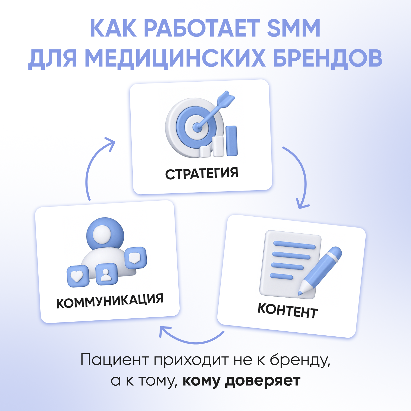 Для клиник и медцентров СММ — это не просто инструмент продаж. Это способ формировать экспертный имидж, поддерживать контакт с аудиторией и объяснять сложные темы простым языком. А для клиента — это уверенность, что его слышат и понимают.