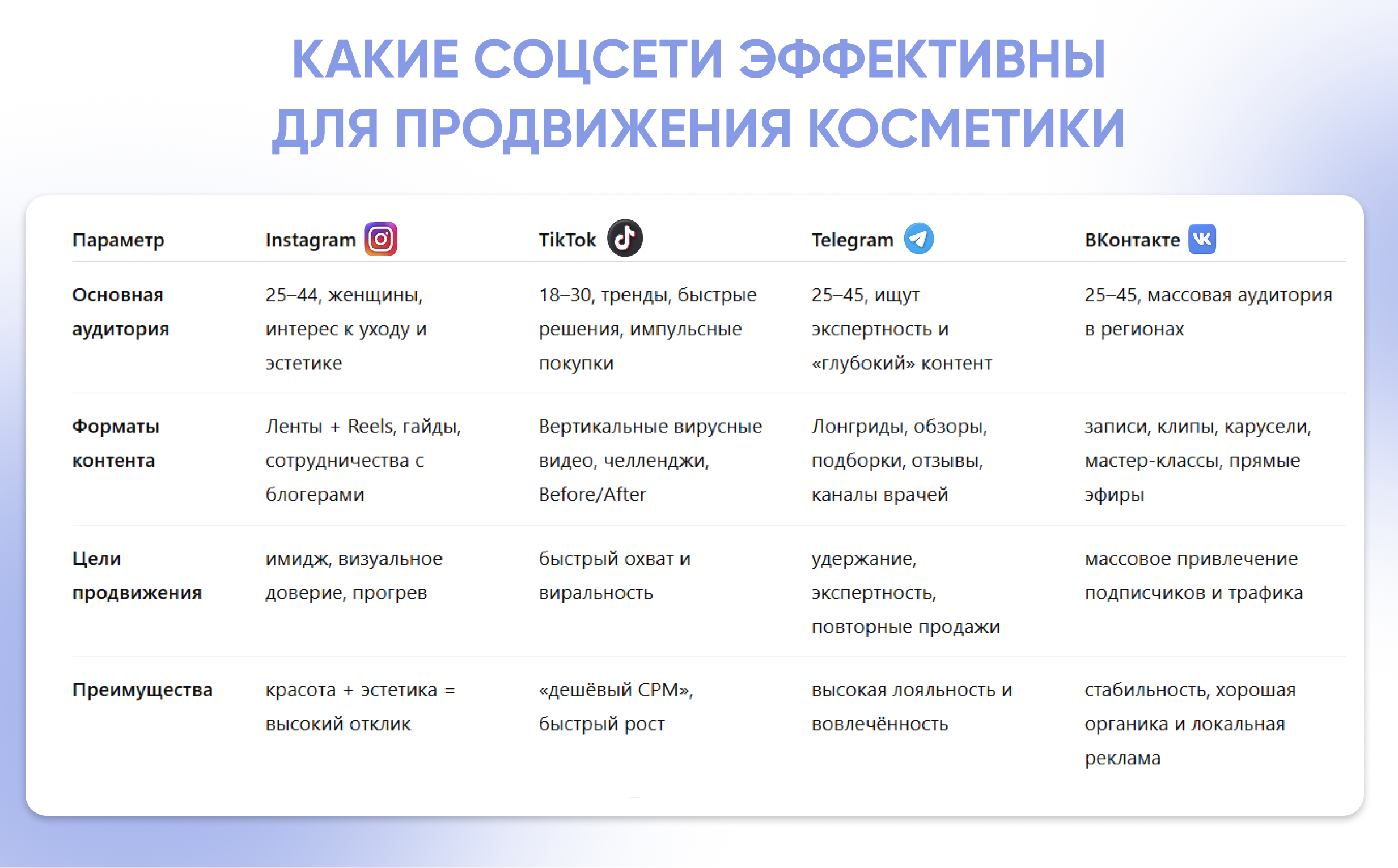 - Продвижение косметической продукции через соцсети