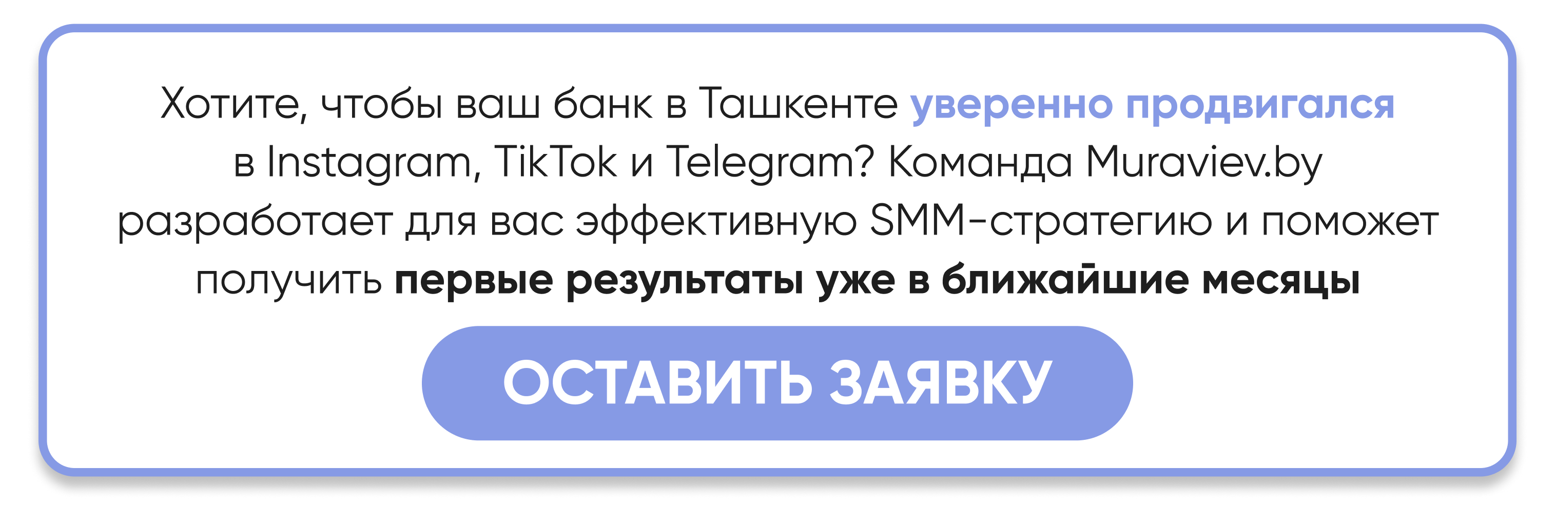 Сегодня продвижение через социальные сети стало основным способом коммуникации между финансовыми организациями и клиентами. Жители столицы Узбекистана активно пользуются Instagram, TikTok и Telegram, и именно эти площадки формируют первое впечатление о бренде.