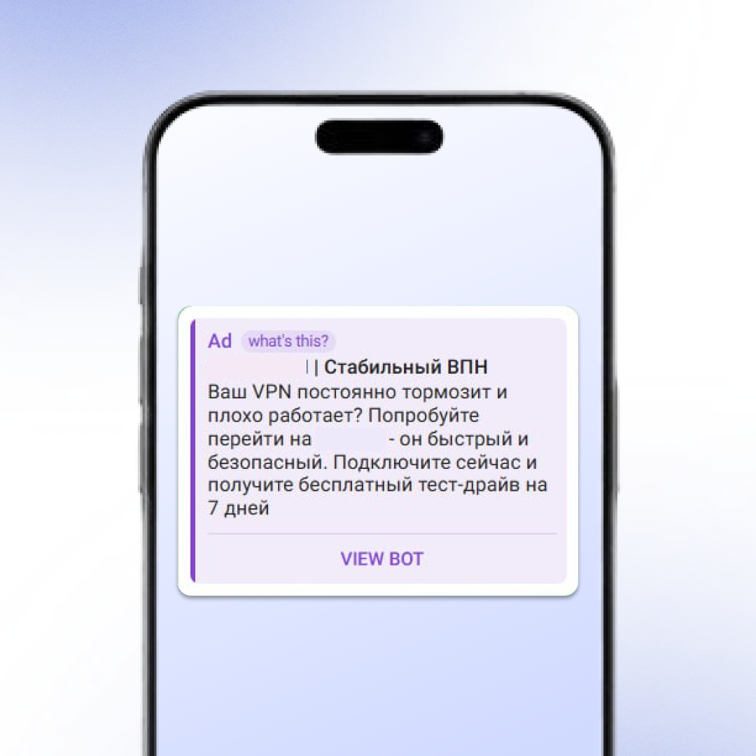 Мы провели рекламную кампанию в Telegram с акцентом на ключевые сообщества, где обитает ЦА сервиса — пользователи, заинтересованные в цифровой безопасности, приватности и стабильной работе VPN